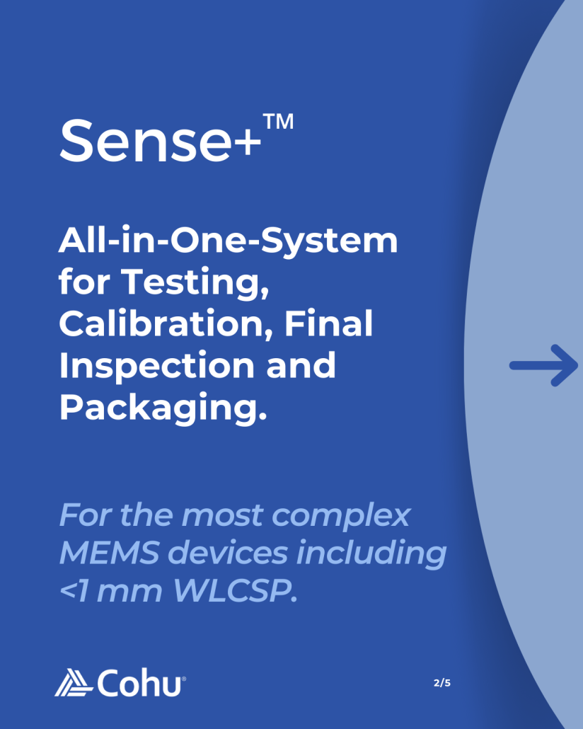 Sense+ next generation automation platform for MEMS & Sensor is optimized for high test requirements and small and sensitive devices, achieving high throughput even for MEMS devices that require longer test times.